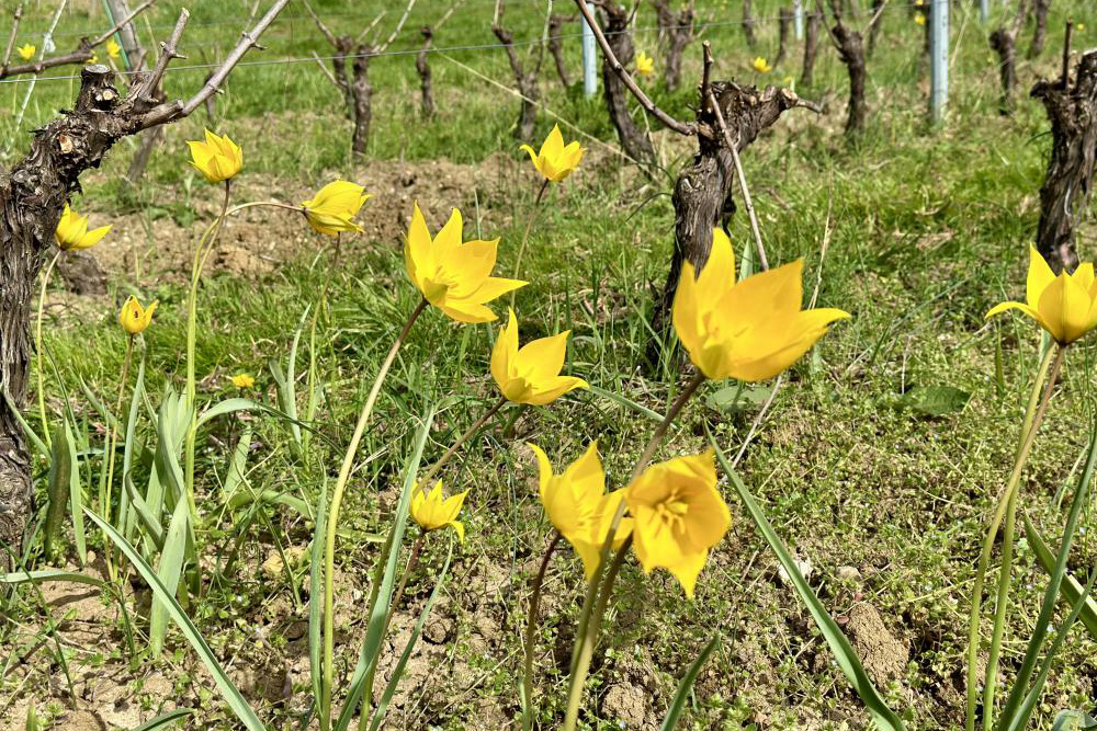 Le domaine doit faire des choix concernant les enjeux d’une viticulture engagée vers l’avenir : les aléas climatiques renforcent les phénomènes d’érosion des sols, fragilisent la reprise des jeunes ceps, stressent les écosystèmes. Les vignes sont donc enherbées un rang sur deux, afin de maintenir un couvert végétal qui conservent la fraîcheur en cas de canicule, protège les rangs en cas de fortes gelées, mais facilite aussi le travail tout au long de l’année.